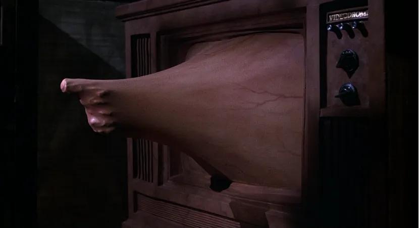 麦克斯·雷恩(詹姆斯·伍兹饰演)是多伦多一家专门播放色情片的私营电视台的节目总监。在一位技术员朋友的帮助下,他从匹兹堡窃取了名为《影视场【Vidéodrome】》的节目,该频道播放真实的“虐杀电影”(包含非表演性质的酷刑、性虐待,甚至谋杀)。妮琪·布兰德(黛布拉·哈里精彩出演)是麦克斯·雷恩在与奥布里维恩【O’Blivion】(意为“遗忘”【Oubli】)教授进行的电视辩论中结识的朋友,她被《影视场》深深吸引,并立即前往了匹兹堡。当麦克斯·雷恩在电视屏幕上看到她时,她正在勒死奥布里维恩教授。在犯罪现场——由教授女儿经营的“阴极射线布道会”(为附近流浪汉提供流行视频的一家慈善机构)内——麦克斯只发现了空荡荡的布景。教授早已去世,如今仅以影像形式存在,不过是众多录影带中的一盒。