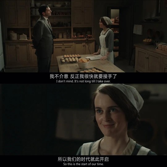 周遭的一切在变,就像片中的种种迹象:克劳利家族出售独立庄园、准备入住别墅豪宅,瘸腿的Bates和美丽的Anna迎来小baby,大管家Carson百般无奈地交班给Parker,曾经频频出错的小厨娘Daisy竟成了独当一面的厨房新当家.....在我看来,学会告别也是适应变化、迈向成熟的一种方式,如此我们才能真正接纳一个崭新而务实的自己。