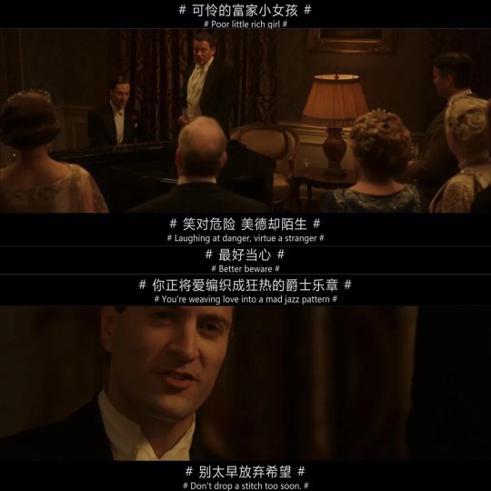 而到了《唐顿庄园3》时,这些都已然变得一派和谐:曾经的男仆Thomas Barrow成了庄园的座上宾;前两季立场尖锐、言辞激烈的Tom Branson转变成雪中送炭、善解人意的好女婿,庄园的家族成员和地下室的仆人团队也不再那么分野尖锐,甚至全体共观一幕歌剧、共赏一首歌曲.....总之,大家都在时代潮流的洗礼中纷纷磨去了“青春的棱角”,走向彼此的和解。