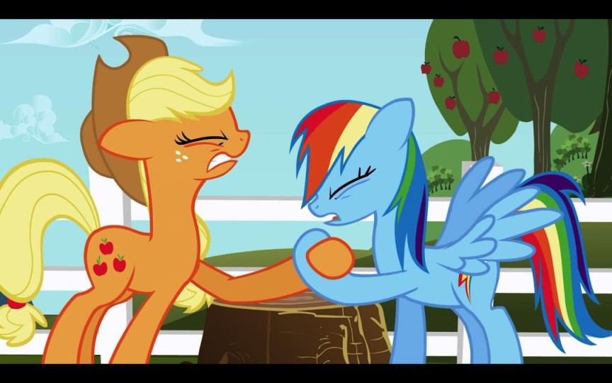 来到小马谷后,Twilight先后结识了Pinkie Pie(我们PP果然是二番)、Apple Jack、Rainbow Dash、Rarity、Fluttershy。一集动画只有25分钟,留给人物塑造的机会确实很少。但Lauren精准地把她们最热爱的事物都呈现了出来:PP爱派对、AJ热情好客、RD爱飞翔、RR爱时尚、FS爱动物。这些特质都为后面的故事埋下了伏笔。