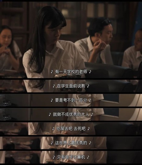 云、校园监控评分系统和城市里的高楼、立交桥、水泥板教学楼、抗震建筑一样,都是开场字幕所提到的“庞大高楼”的视觉符号。鬼头首相——校长——警察——自卫队军人,他们和前面的视觉符号互为表里,以言行、视觉的双重形式,压迫着高中生的青春。
