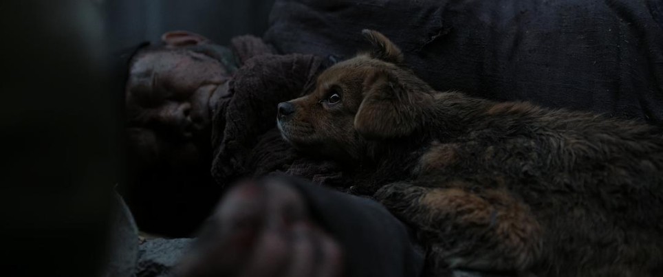 下一秒一句中国人尸体上趴着一只狗 狗都能活 中国人不能 明里暗里表示中国人在他们眼里不如一只狗