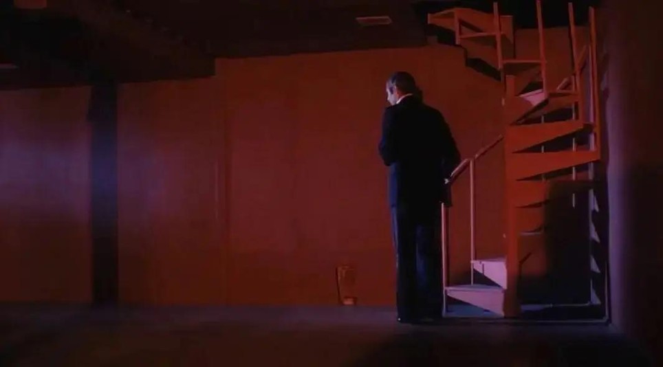 《谋杀地下老板》构建了一种空间往复的叙事:一边是充满想象力的具象空间;即科兹莫的西部疯狂之家俱乐部(这似乎是他唯一的容身之所),另一边则是洛杉矶的其他场所。在那里,所有遭遇都注定走向灾难,一切遵循荒诞规则,时空秩序支离破碎——电影刻意让我们失去对时间的感知(如在电影院场景),或是对空间的把握(如地下老板的宅邸,其空间感依赖灯光与欺骗性的剪辑构成),甚至对伦理关系的认知……到最后,这种混乱延伸到了行动与结果的关联(停车场的那一幕):他的车在高速公路上莫名失踪,钱在黑手党赌场不翼而飞。